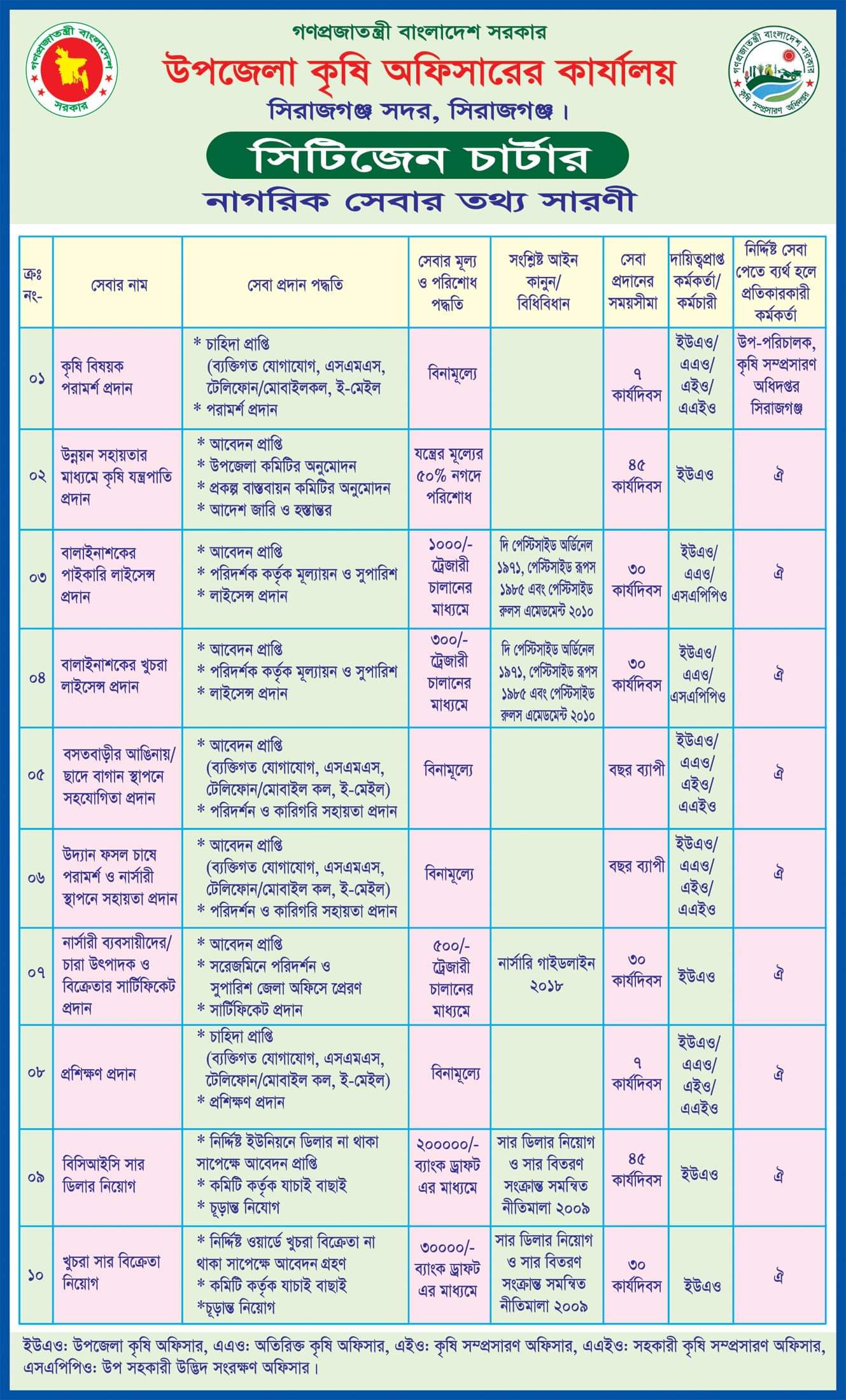 উপজেলা কৃষি অফিস কি কি নাগরিক সেবা প্রদান করে, সিটিজেন চার্টার তাই প্রকাশ করে।